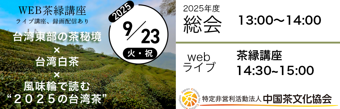 - 2025.9.82025年9月23日【総会&WEBライブ茶縁講座】台湾茶 ※一般参加OK/会員無料